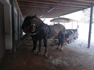 Bei herrlicher Schneelage im Dezember 2017 hatten wir das Glück mit dem Hammerer und seinen Norikern über tiefverschneite Wege und durch Waldpassagen zu traben aber auch im zügigen Galopp durch die Landschaft zu fahren. Es war eine schöne Stunde in der frischen Luft und der in weiß gebetteten Natur.