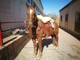 Da ich aktuell drei Tage pro Woche Zeit habe, widme ich diese Tage voll und ganz beiden Pferden. Das geht soweit, dass ich morgens ca. 7 Uhr im Stall bin. Dann bringe ich beide auf den wunderschönen Reitplatz und lasse beide toben für ca. 10 Minuten. Danach geht’s ab in die kleine Koppel.