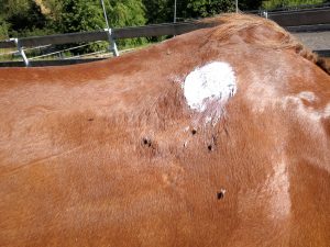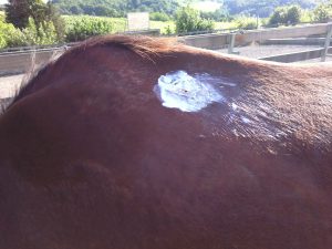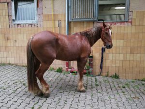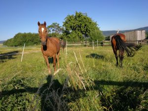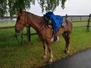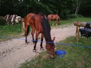 Nur noch vier Kilometer durch Weinberge bis zum Ziel. Bei der Wanderreitstation werde ich von Frau Lamp bereits empfangen. Am Ziel, wie üblich, zuerst Pferde versorgen, die Widerrist-Verletzungen begutachten und mit Zinksalbe beschmieren und dann Beide auf die Koppel bringen. Bei Familie Lang, die haben eine sehr schöne Anlage, bin ich noch zum Grillen eingeladen. Zuerst konnte ich noch duschen. Zweiundzwanzig Uhr falle ich nach einer Rundwanderung von ca. 36 Kilometern ins Bett. Wie geht es weiter? Die Verletzungen, deren Ursache ich noch nicht kenne, erlauben es nicht mit den Sätteln und Gepäck weiter zu reiten oder gehen. Eine Alternative wäre, das Gepäck wird von jemanden Transportiert und ich setze die Wanderung zu Fuß mit den Beiden fort. Fest steht, es wird drei bis vier Wochen brauchen, dass die Satteldruck Wunden verheilt sind. Vorher kann ich nicht weiter machen. Ob ich die Pferde nach Hause bringe oder hier stehen lasse zum Auskurieren steht noch in den Sternen. Ich diskutiere die verschiedenen Möglichkeiten mit meinen Vertrauten. Schade, es war bis jetzt, trotz vieler Irrungen und zusätzlicher Wege eine schöne Erfahrung mit den Pferden, welche einiges gelernt haben. Bahnübergang, kein Problem, Metall-Gatter keine Aufregung, dämliche Verkehrsteilnehmer mit Gelassenheit. Wie es weiter geht erfahrt ihr in den nächsten Tagen.
