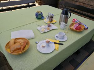 Krümel ging im Laufschritt lässig über den Balken, aber springen, was ist das. Die Gegend um Weiler ist schön geprägt von einer hügeligen Landschaft mit Getreidefeldern, Weinanbau und einer Vielzahl von Pferdekoppeln. Es ist schön hier und bei Familie Lamp lässt es sich gut aushalten.