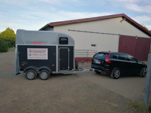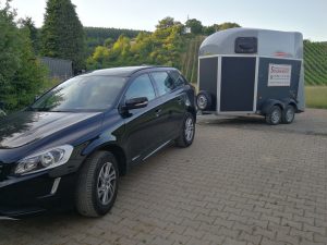 es ist schade, dass ich die Reise abbrechen musste, aber die Verletzungen der Pferde habe eine Weiterreise mit Gepäck nicht zugelassen. Beide haben Druckstellen im Bereich Widerrist und laut Tierärztin muss das zuerst ganz verheilen. Also was nun? Die Pferde bei Beate in Weiler an der Nahr für einige Wochen stehen lassen oder wieder nach Sachsen-Anhalt in den Stall bringen? Jetzt geht es zuerst einmal darum wie kann ich die Pferde transportieren. Wie bereits angekündigt geht es um den Rücktransport. Mit welch einem Fahrzeug, wo den Pferdetransporter ausborgen. Alles Fragen die ich am 1.07.2019 und 2.07.2019 klären musste. Das Fahrzeug ging relativ einfach. Ich habe den VOLVO XC60 von zu hause angefordert. Laurent, der möchte nach Kolumbien, bringt mir das Fahrzeug. Es ist stark und schwer genug um einen voll beladenen Pferdeanhänger zu ziehen. Wo bekomme ich den Pferdeanhänger her? Dieses war etwas schwieriger denn alle Anhänger im Reitstall sind laut Aussagen defekt. Schade, denn die hätte ich schon längst reparieren können. Wir hatten einen Verleiher aufgetan, welcher aber kurzfristig absagte. Was nun? Gott sei dank gibt es Nähe Leipzig die Firma Schuhknecht, welche uns zu moderaten Konditionen einen Pferdeanhänger zur Verfügung stellt.