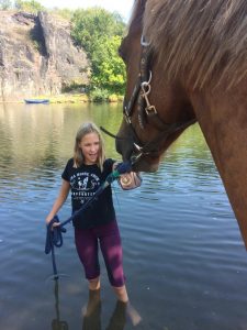 Krümel konnte nur dazu bewegt werden die Vorderhufe ins Nass zu stellen. Jedes Mal, wenn ein Schiff vorbei kreuzte, egal welcher Größe, schwappten kleine Wellen ans Ufer, und dass war für Krümel den Angsthasen sehr gefährlich. An dieser Stelle heißt es üben und noch einmal üben. Ich bin schon froh, dass Striche am Boden, Bleche und Bahnschienen keinen Schrecken mehr verbreiten.