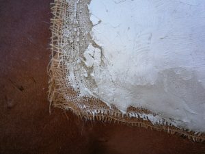 Gut gedacht, nur habe ich mit falschen Mitteln versucht den Rücken von Keks in Gips zu legen. Was ist falsch gelaufen? Leider hatte ich keine Gipsbinden bekommen. Schlau wie ich glaubte zu sein, habe ich einen grobmaschigen Jutesack verwendet, diesen auf den Keks in Sattellage auf eine Folie gelegt und den Jutesack mit angerührten Gips bestrichen.