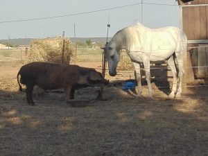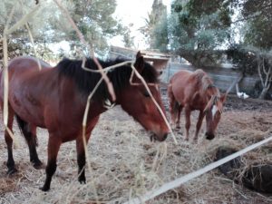 jedoch, da ich in sehr kurzer Zeit meinen Keks (Biskuit) und Krümel auf gesittete, kontrollierte Gangarten einstellen muss, ist beinahe jede Minute kostbar. Glaubt mir, das ist anstrengend. War die Tage abwechselnd mit Krümel und Keks alleine draußen. Es gab mit beiden Pferden an der ein oder anderen Wegstrecke erhöhten Diskussionsbedarf, wenn ihr wisst was ich meine. Krümel diskutiert mit mir ob ich aufsteigen darf, ob wir durch diese „enge Häuserschlucht“, es sind nur zwei Einfamilienhäuser und eine kleine Finca, gehen und kaum ist ein abgeerntetes Stoppelfeld da, dann geht er ohne mein Zutun in den Speed Galopp, nach dem Motto: hallo Reiter bin ich nicht schnell? Es bedarf schon einiges an reiterlichen Fähigkeiten Krümel wieder auf europäisches Reiten einzustellen. Ähnlich geht es auch mit dem Keks. Zwar lässt mich dieser beinahe problemlos in den Sattel, jedoch diskutiert der Keks genauso gerne wie Krümel und ein freies Feld heißt: hurra ich zeig dir was ich kann, und so standen nach ca. 300 Meter freiem Stoppelfeld mitten im Hafer. Bei den Diskussionen hat Krümel eine besondere Eigenart um zu zeigen, ob etwas missfällt. Krümel schlägt dann mit dem rechten Vorderhuf fünfmal auf den Boden. Immer fünf mal, so als ob er zählen könnte.