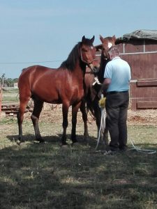 jedoch, da ich in sehr kurzer Zeit meinen Keks (Biskuit) und Krümel auf gesittete, kontrollierte Gangarten einstellen muss, ist beinahe jede Minute kostbar. Glaubt mir, das ist anstrengend. War die Tage abwechselnd mit Krümel und Keks alleine draußen. Es gab mit beiden Pferden an der ein oder anderen Wegstrecke erhöhten Diskussionsbedarf, wenn ihr wisst was ich meine. Krümel diskutiert mit mir ob ich aufsteigen darf, ob wir durch diese „enge Häuserschlucht“, es sind nur zwei Einfamilienhäuser und eine kleine Finca, gehen und kaum ist ein abgeerntetes Stoppelfeld da, dann geht er ohne mein Zutun in den Speed Galopp, nach dem Motto: hallo Reiter bin ich nicht schnell? Es bedarf schon einiges an reiterlichen Fähigkeiten Krümel wieder auf europäisches Reiten einzustellen. Ähnlich geht es auch mit dem Keks. Zwar lässt mich dieser beinahe problemlos in den Sattel, jedoch diskutiert der Keks genauso gerne wie Krümel und ein freies Feld heißt: hurra ich zeig dir was ich kann, und so standen nach ca. 300 Meter freiem Stoppelfeld mitten im Hafer. Bei den Diskussionen hat Krümel eine besondere Eigenart um zu zeigen, ob etwas missfällt. Krümel schlägt dann mit dem rechten Vorderhuf fünfmal auf den Boden. Immer fünf mal, so als ob er zählen könnte.