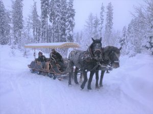 Bei herrlicher Schneelage im Dezember 2017 hatten wir das Glück mit dem Hammerer und seinen Norikern über tiefverschneite Wege und durch Waldpassagen zu traben aber auch im zügigen Galopp durch die Landschaft zu fahren. Es war eine schöne Stunde in der frischen Luft und der in weiß gebetteten Natur.